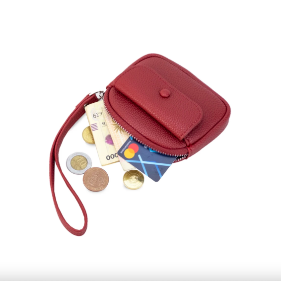 Monedero de dama con correa de mano, diseño práctico y compacto. Su bolsillo principal con cierre cuenta con un portallaves, y un bolsillo frontal pequeño con botón para objetos pequeños. Material: Símil Cuero. Medidas: Altura: 11,5 cm, Base: 13 cm, Profundidad: 2,5 cm. Colores disponibles: Bordo, Piel, Ceniza, Plata, Habano, Rosa, Melón, Rosa Palo, Negro y Pistacho. Seleccionar el color en el campo Observaciones al momento de hacer la compra.