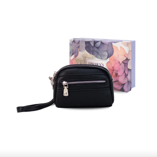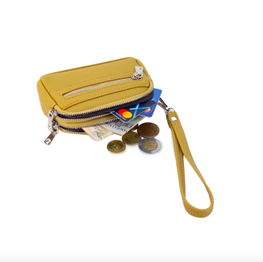 Monedero de dama con correa para la mano, diseño práctico y compacto. Bolsillo principal con doble cierre, y un bolsillo frontal pequeño para llevar tus monedas de forma organizada. Material: Símil Cuero. Medidas: Altura: 9,5 cm, Base: 13,5 cm, Profundidad: 4 cm. Colores disponibles: Arena, Rosa Palo, Bordo, Castaño, Musgo, Melón, Negro, Pistacho, Petroleo y Salvia. Seleccionar el color en el campo Observaciones al momento de hacer la compra.
